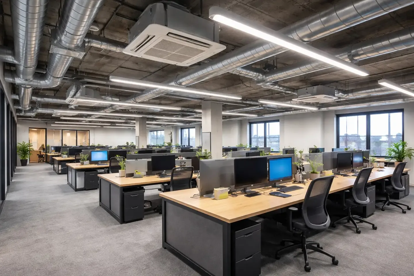 - Flooring: a combination of laminate and carpet, appropriate for work areas, meeting rooms, or reception zones.