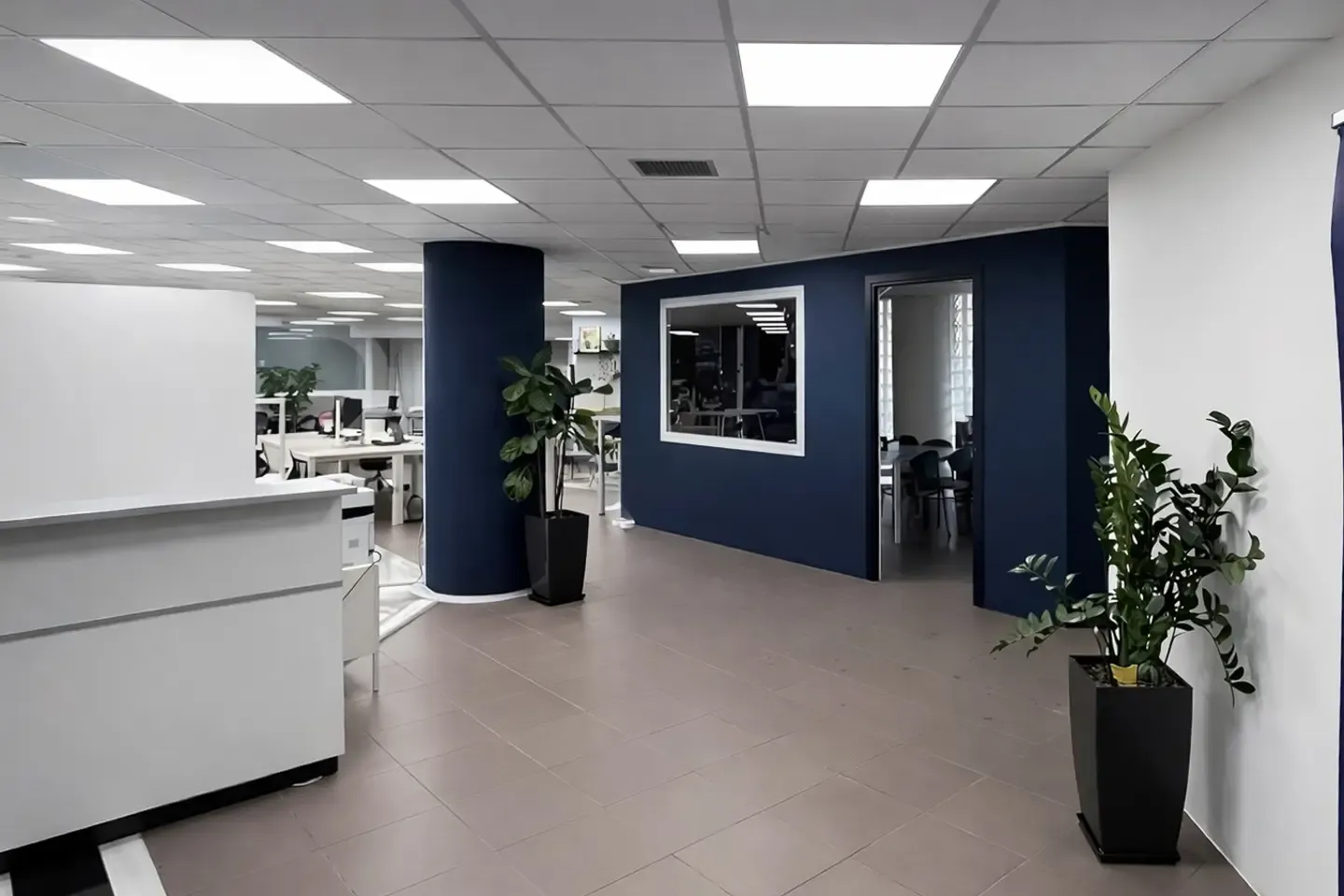 Office of 880 sq.m in Marousi, built in 2000, Energy Class A. Includes 6 WCs, 1 kitchen, reception and meeting room, with abundant natural light and open views. Modern IT infrastructure, HRV ventilation and fire detection system.