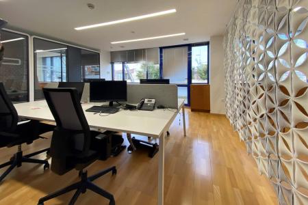 Πιο συγκεκριμένα, ο χώρος διαθέτει open space γραφεία, meeting rooms, χώρος υποδοχής, εστιατόριο, δομημένη καλωδίωση Cat 6 με οπτική ίνα, αυτόνομη ψύξη - θέρμανση, υπερυψωμένο δάπεδο, ψευδοροφή ορυκτής ίνας, 5 ανελκυστήρες, κουζινάκι και WC.