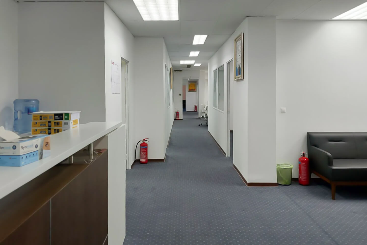 Επιπλέον, το σύστημα κλιματισμού ψύξης- θέρμανσης είναι αυτόνομο, υπάρχει εγκατάσταση για υπολογιστές, δομημένη καλωδίωση, ψευδοροφή και δάπεδα από μοκέτα.