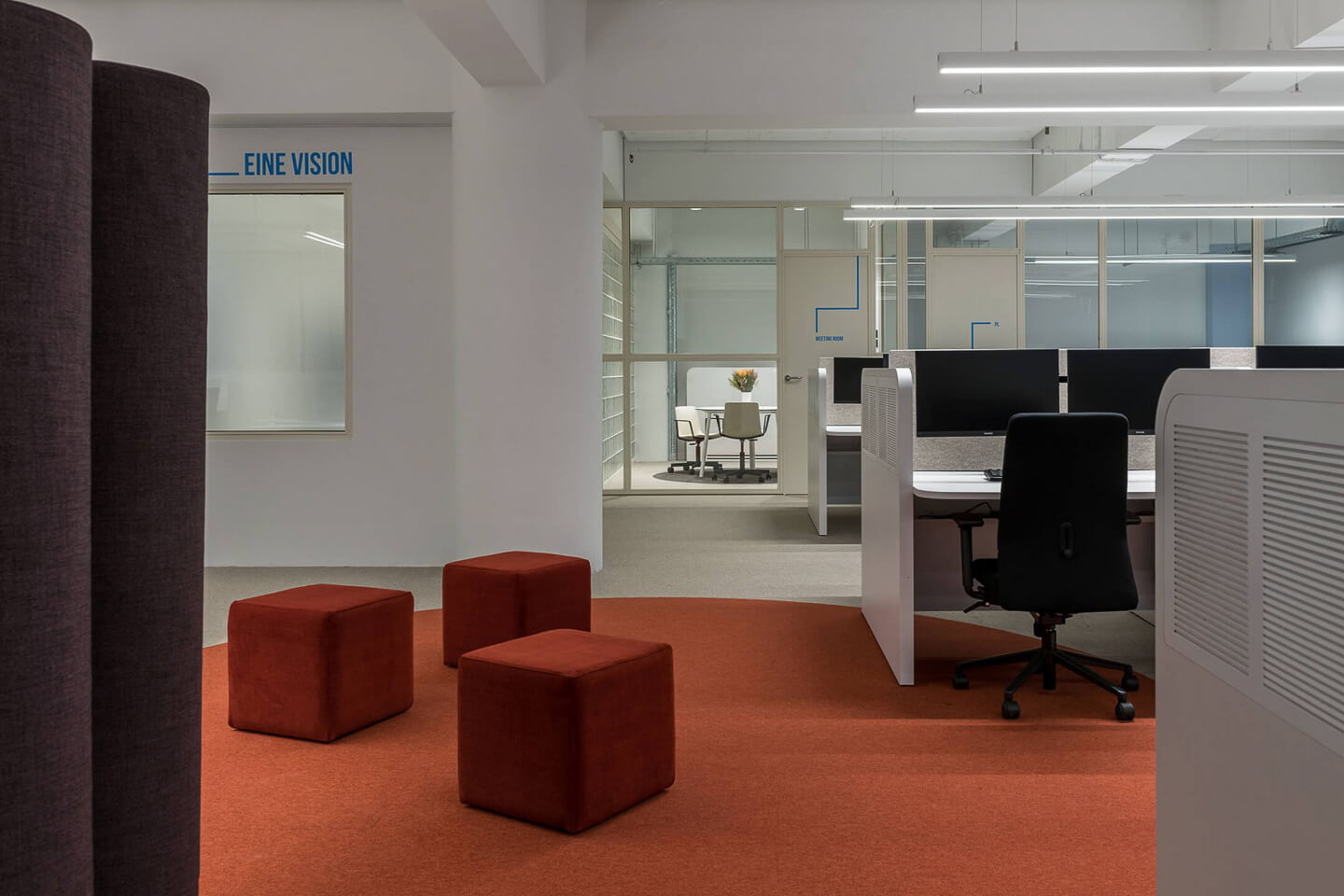Ο χώρος διαθέτει υπερυψωμένα βινυλικά δάπεδα, ανοιχτή οροφή βιομηχανικού τύπου, LED φωτισμό και έχει πιστοποίηση ενεργειακής απόδοσης LEED. Η διαρρύθμιση περιλαμβάνει μεγάλους open space χώρους, κλειστά γραφεία, meeting rooms, server room, καθώς και κινητά χωρίσματα για ευελιξία στη χρήση.