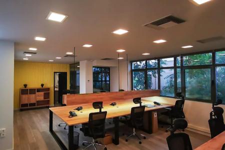 Συγκεκριμένα, διαθέτει υπόγειo με αποθηκευτικό χώρο και αίθουσα συσκέψεων, ισόγειο με χώρο υποδοχής και 3 ορόφους ανωδομής γραφείων, διαμορφωμένων με κινητά χωρίσματα.
